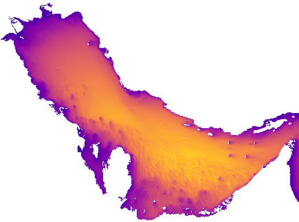Gridded topo-bathy datasets were used in conjunction with the Matlab-based OceanMesh2D toolbox to generate the PERGOS-3 unstructured mesh. This process applies parametric constraints related to depth, slope, nearshore proximity and element quality to optimize the mesh for hydrodynamic modeling in an objective data-based and reproducible way. While the model domain was designed to include the Gulf of Oman, the PERGOS-3 archive is available for the region within and west of the Strait of Hormuz only. Final mesh depths were compared against available BA and DMA chart soundings when possible.