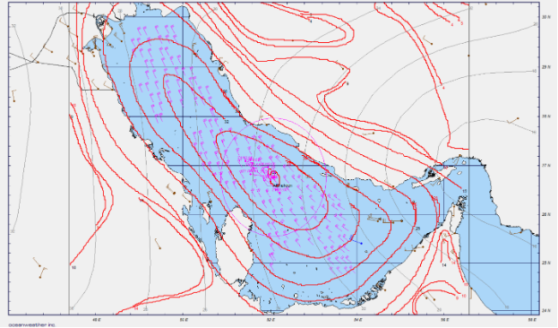 We are pleased to announce the availability of PERGOS-3, Oceanweather's (OWI's) follow-up to the PERGOS and PERGOS-2 metocean hindcasts for the Persian Gulf. This continuous hindcast archive spans the period 1960 through 2024 and has been produced using our decades of experience in atmospheric reanalysis and ocean response modeling in the region. For the hindcast, the ADCIRC+SWAN modeling system was implemented in the relatively shallow Gulf domain to capture tidal and storm surge water level variation and incorporate it in the wave model response. Wind, pressure, bulk wave, water level and current parameters are available as time series at individual points in addition to available operability and extreme value analyses.